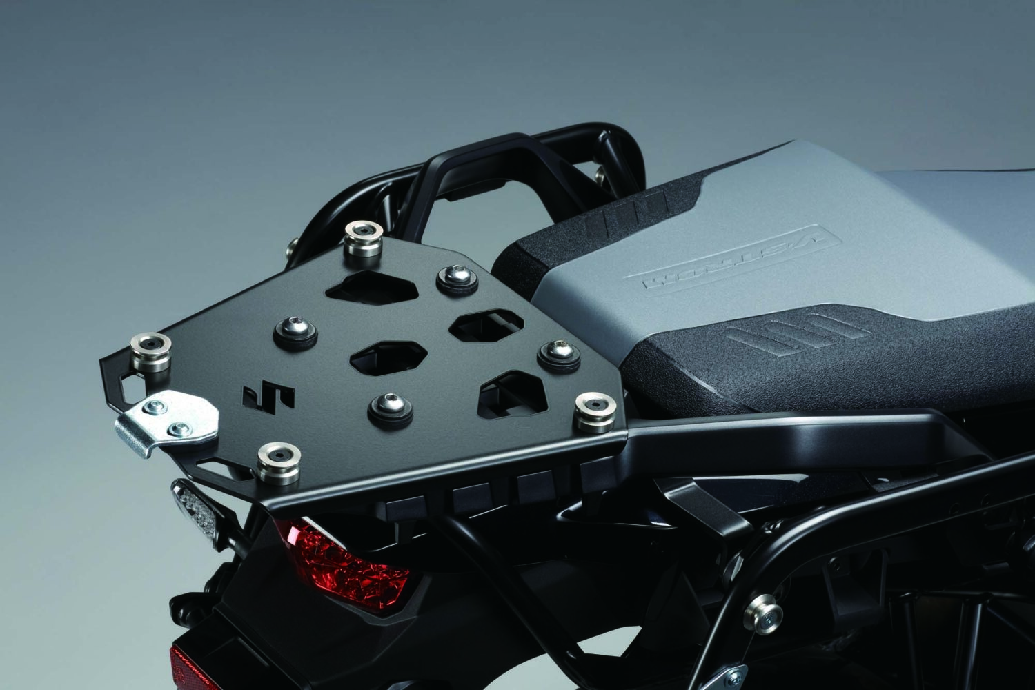 Top Case Carrier Plate is required for installation of the 38 Liter Silver Aluminum Top Case (93100-25840) or Black Aluminum Top Case (93101-25840).